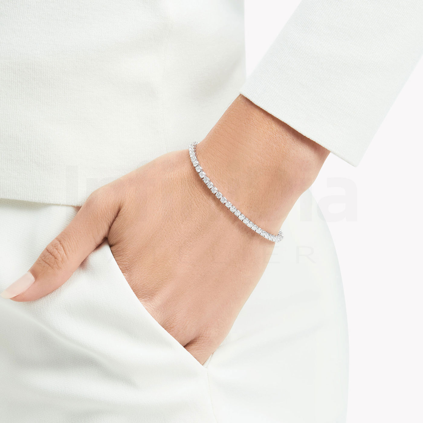 The Tennis Bracelet is a classic and elegant bracelet design, typically featuring a continuous row of uniformly sized diamonds or gemstones, set in delicate metal settings to create a look that is both minimalistic and luxurious.