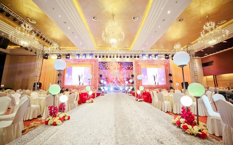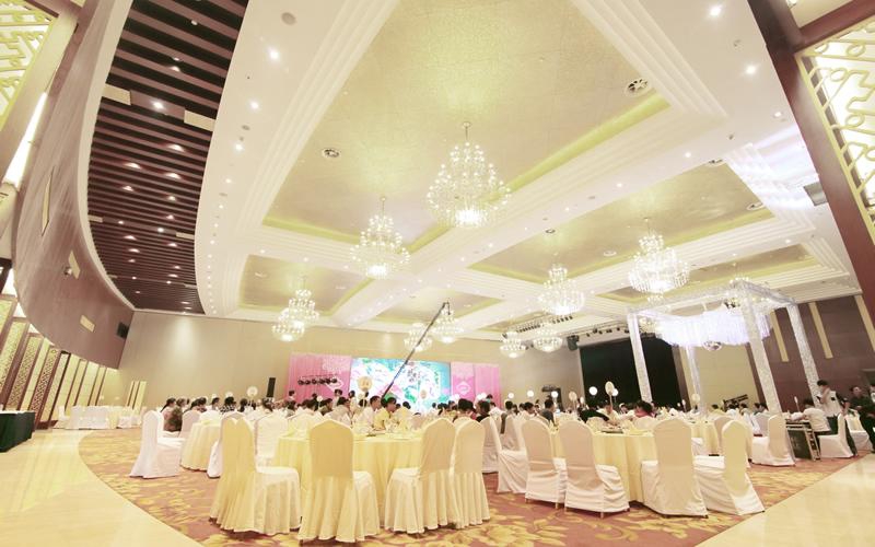 酒店建筑面积5.80万平方米,主楼26层,裙楼5层。位于二层的国际厅为2200平米无柱型多功能厅,可根据需要分隔成两个厅。7吨位车载电梯、同声传译等先进设施,可同时容纳2200人会议,是举办商企盛会、婚宴、聚会活动的最佳选择。一层的长江厅、黄山厅、淮河厅等风格迥异的多功能会议厅,均配备先进的高科技影音设备。可游刃有余地接待各类会议,灵活满足各种类型会议及宴会。